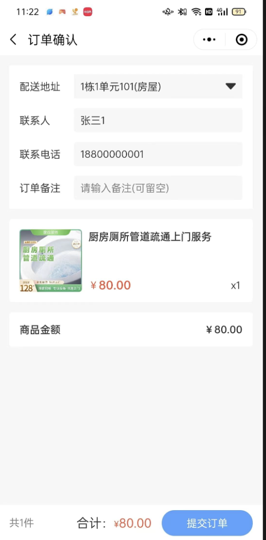 商城模块,物业可在后台发布收费服务项目或产品,在线售卖产品绑定房产下单配送(服务)到家;